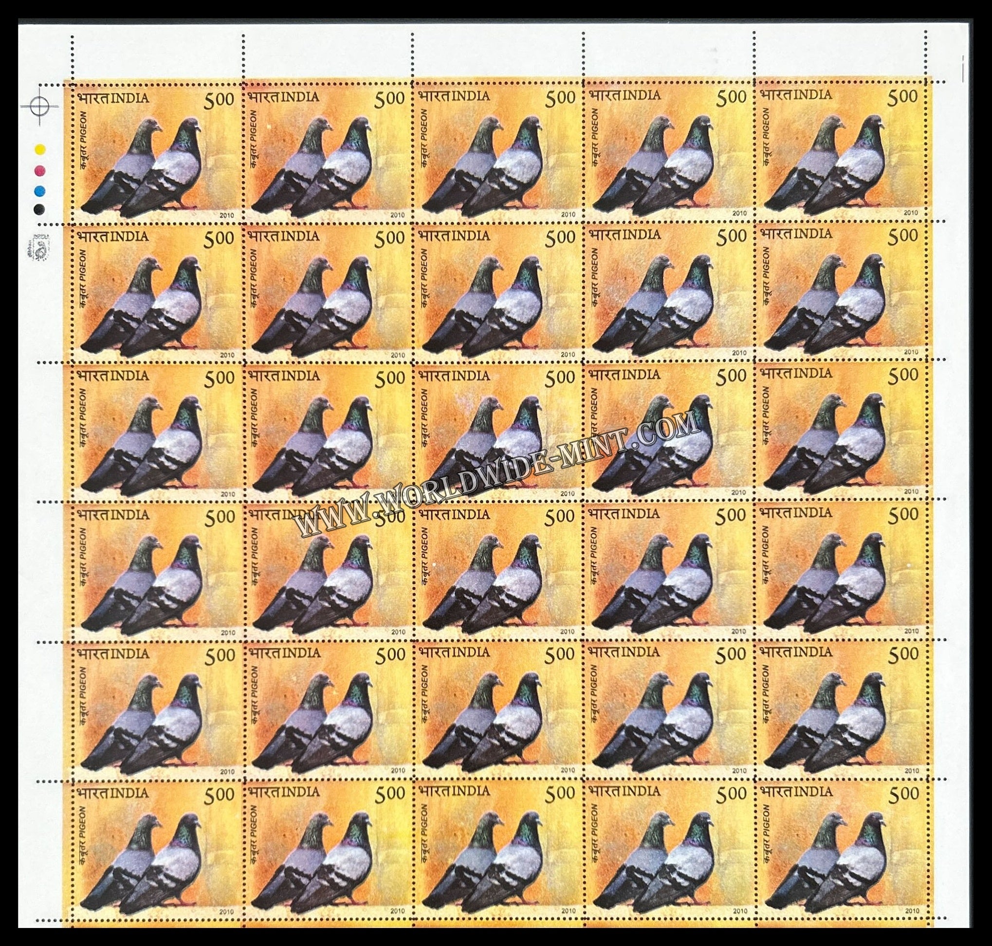 2010 India Pigeon & Sparrow - Rock Pigeon Full Sheet of 30 Stamps