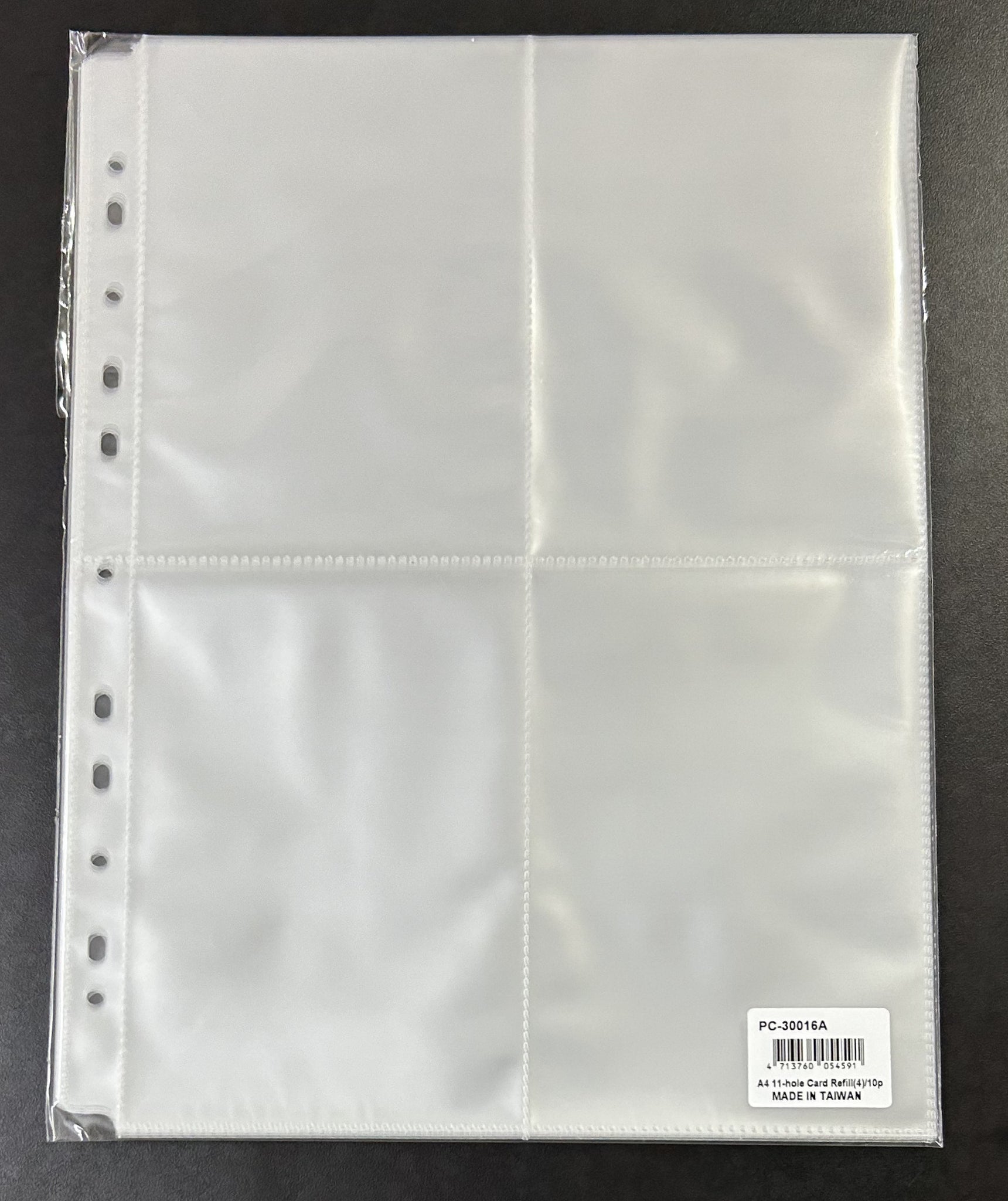 PC-30016A (Top Open) A4 11- Hole Clear (Transparent) Postcard Refill Page 4 pocket for 4 X 6 Inch Postcard / Small FDC / Block of 4 - 10 Refill Sheet - Imported Taiwan Made - Chuyu Culture