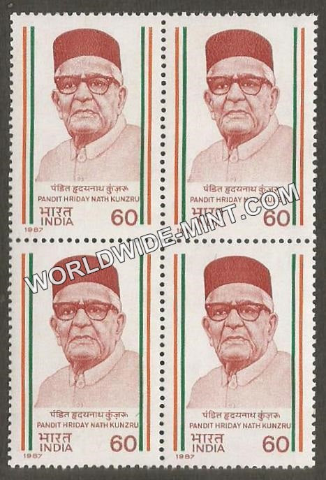 1987 Pandit Hriday Nath Kunzru Block of 4 MNH