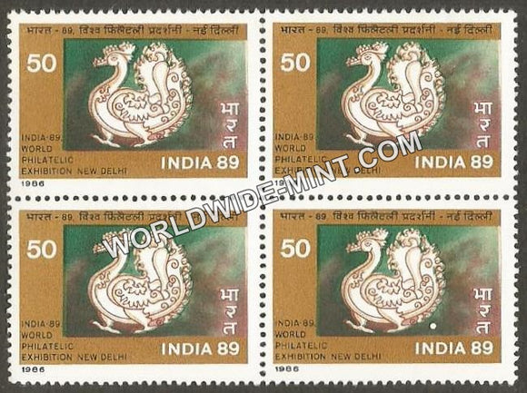 1987 India-89 (World Philatelic Exhibition)-Logo Block of 4 MNH