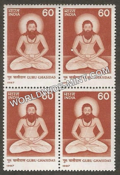 1987 Guru Ghasidas Block of 4 MNH
