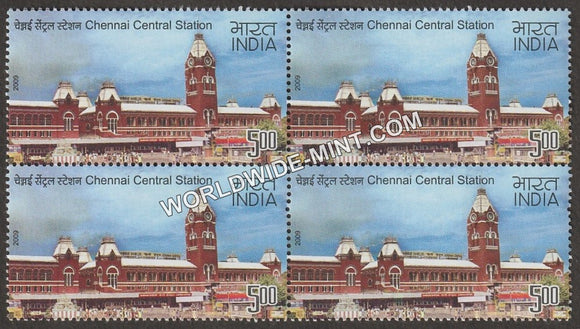 2009 Heritage Railway Stations of India-Chennai Central Block of 4 MNH