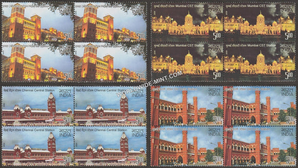 2009 Heritage Railway Stations of India-Set of 4 Block of 4 MNH
