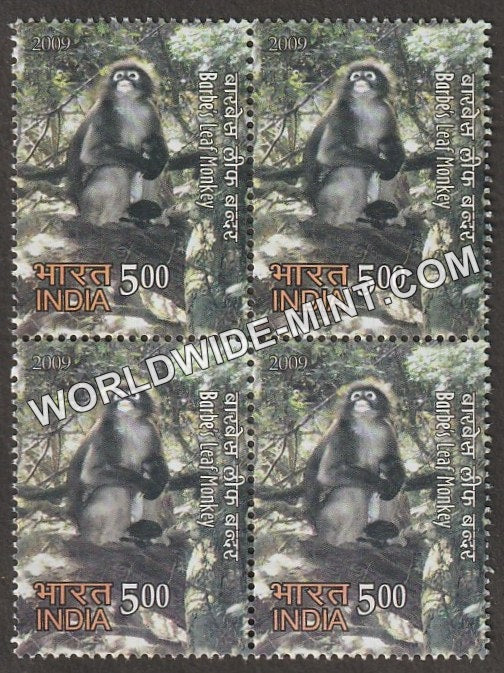 2009 Rare Fauna of the North East-Barbe’s Leaf Monkey Block of 4 MNH