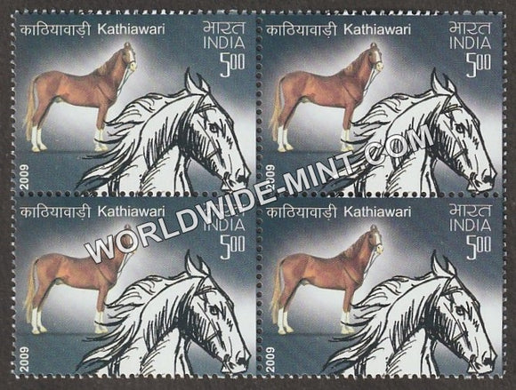 2009 Horses of India-Kathiawari Block of 4 MNH