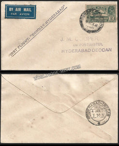 1935 Bombay - Hyderabad First Flight Cover #FFCE2
