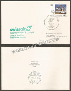 1991 Delhi - Zurich Swissair First Flight Cover #FFCC28