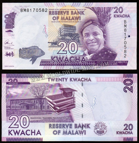 Malawi 20 Kwacha - 2017 UNC Currency Note N# 204177
