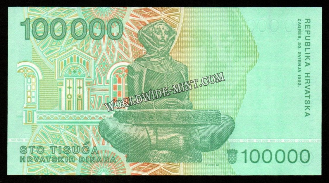 Croatia 100000 Dinara 1993 UNC Banknote N#203368