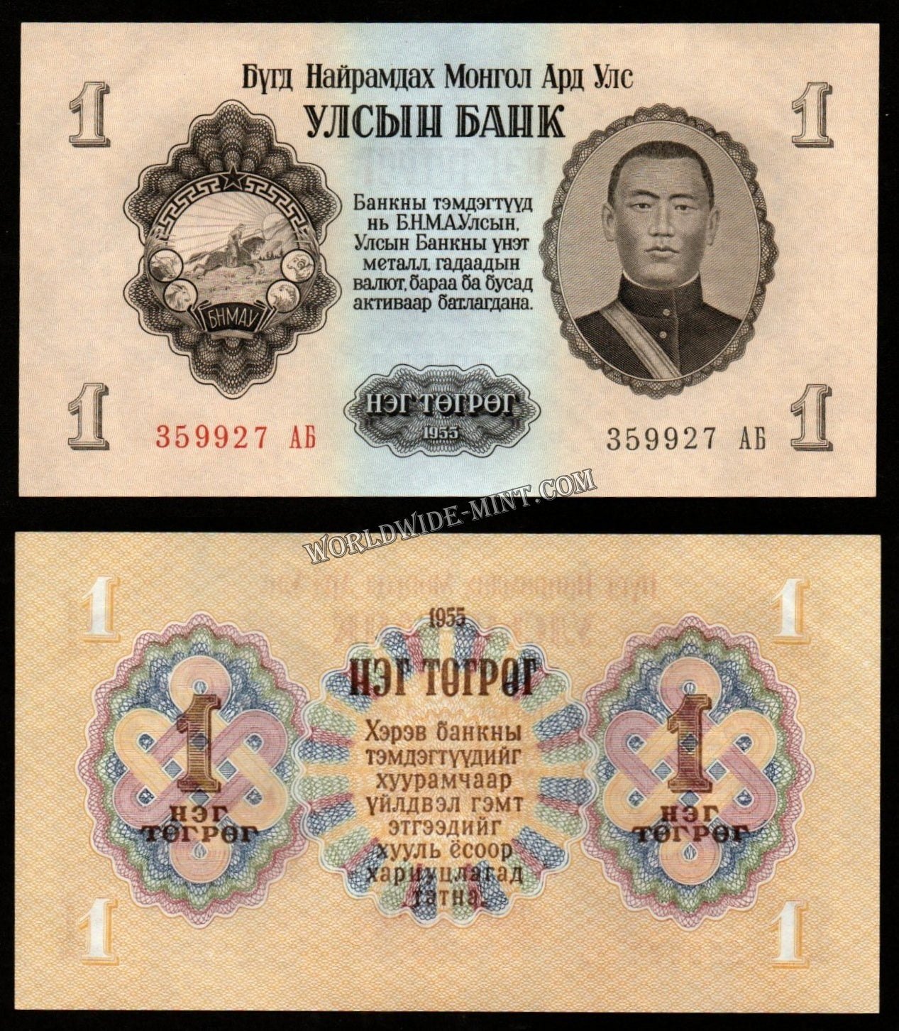 Mongolia 1 Togrog 1955 UNC Banknote N#203169