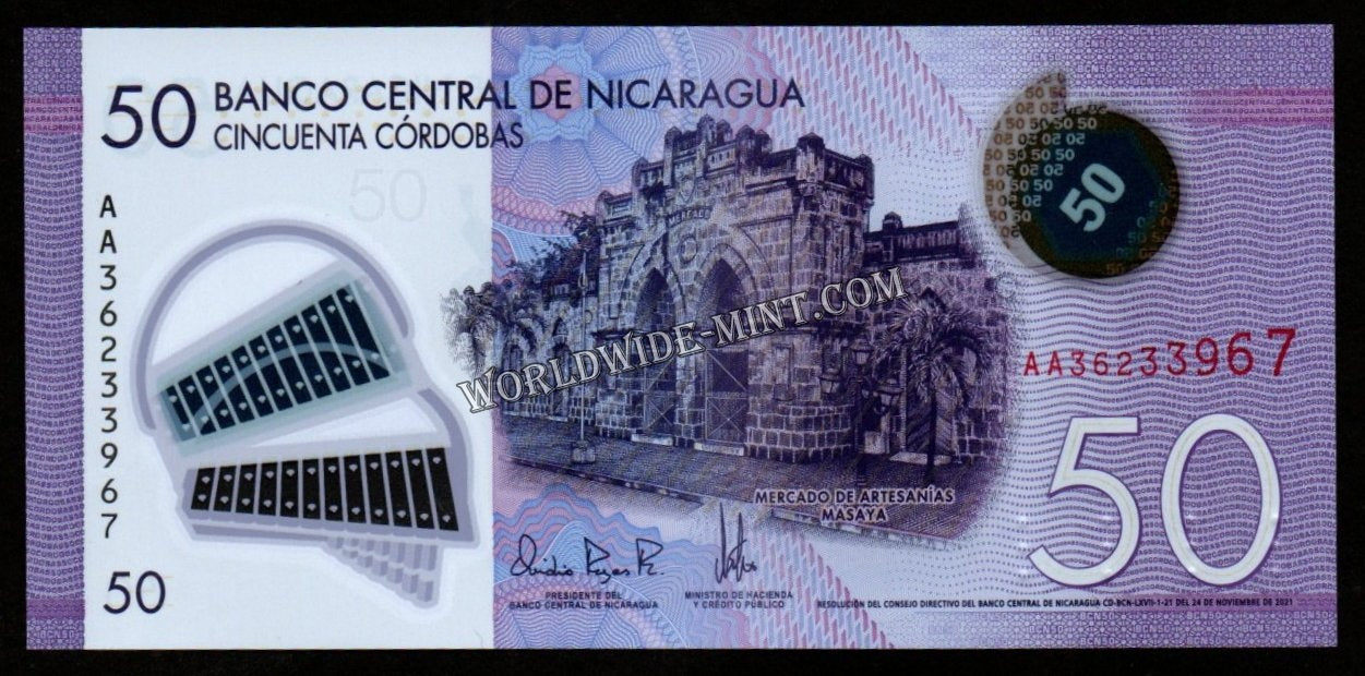 Nicaragua 50 Cordoba's 2015 Polymer UNC Banknote N#208467