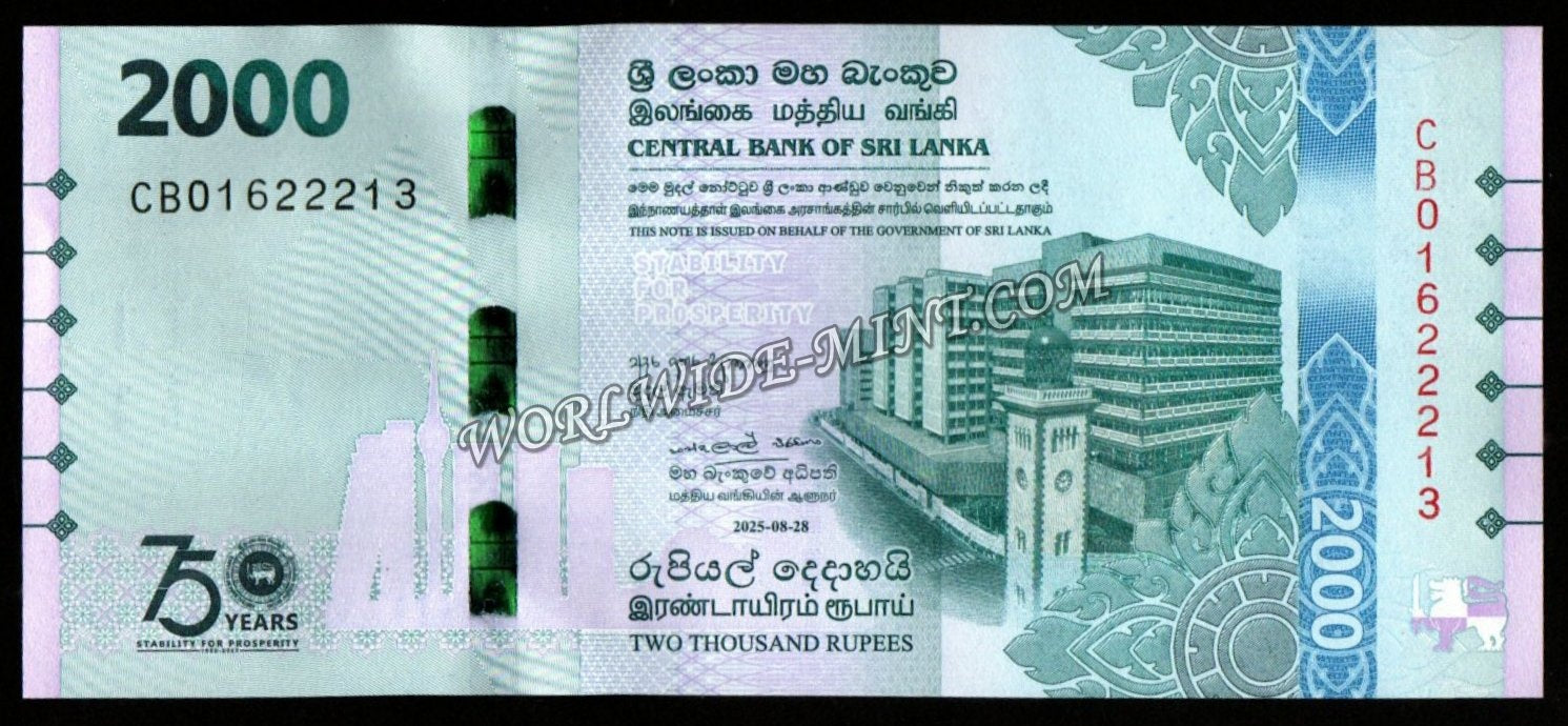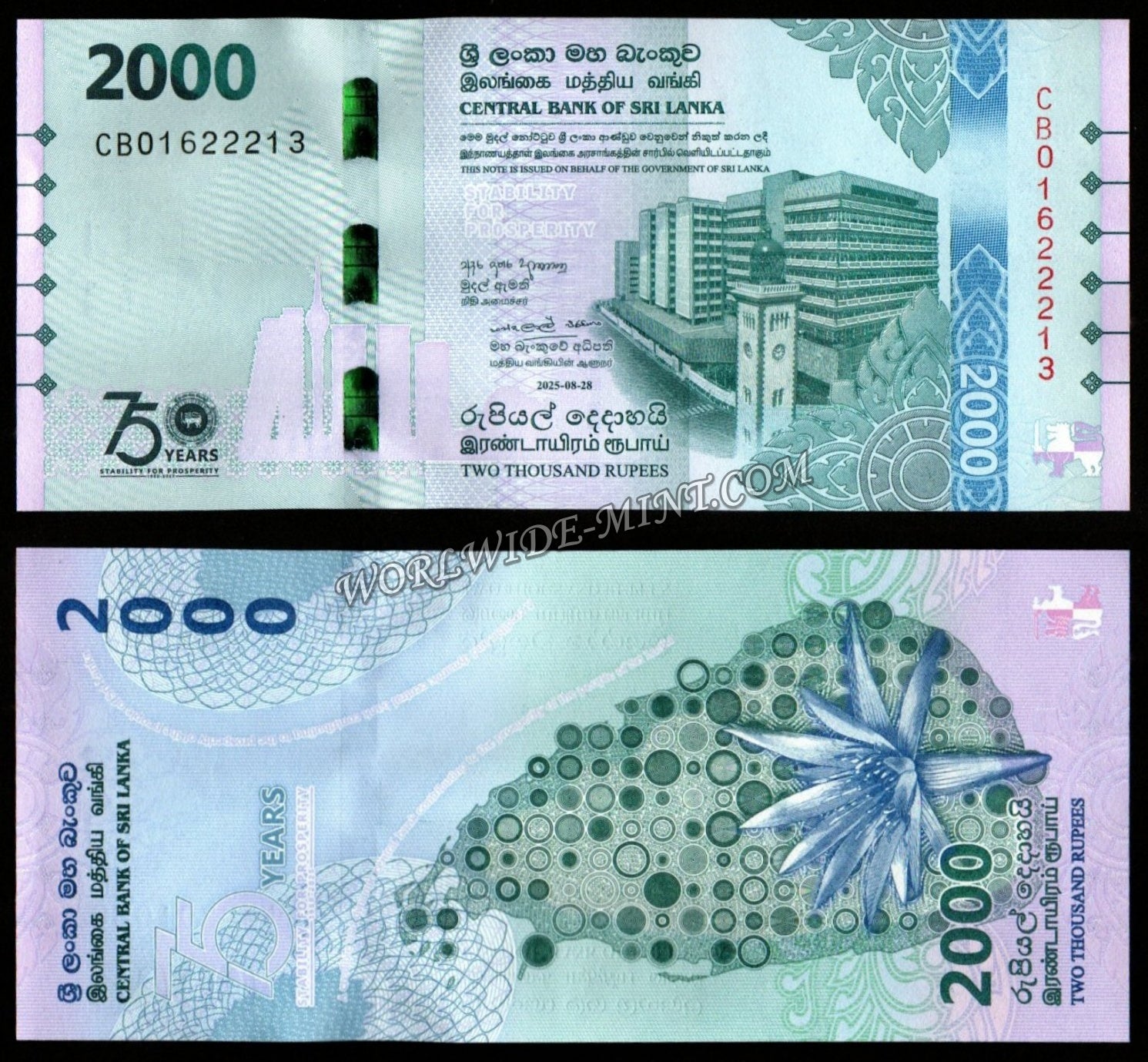 Sri Lanka 2000 Rupees 2025 (Stability for Prosperity) Commemorative UNC BankNote N#483424