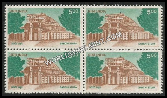 INDIA Sanchi Stupa 8th Series (5 00) Definitive Block of 4 MNH