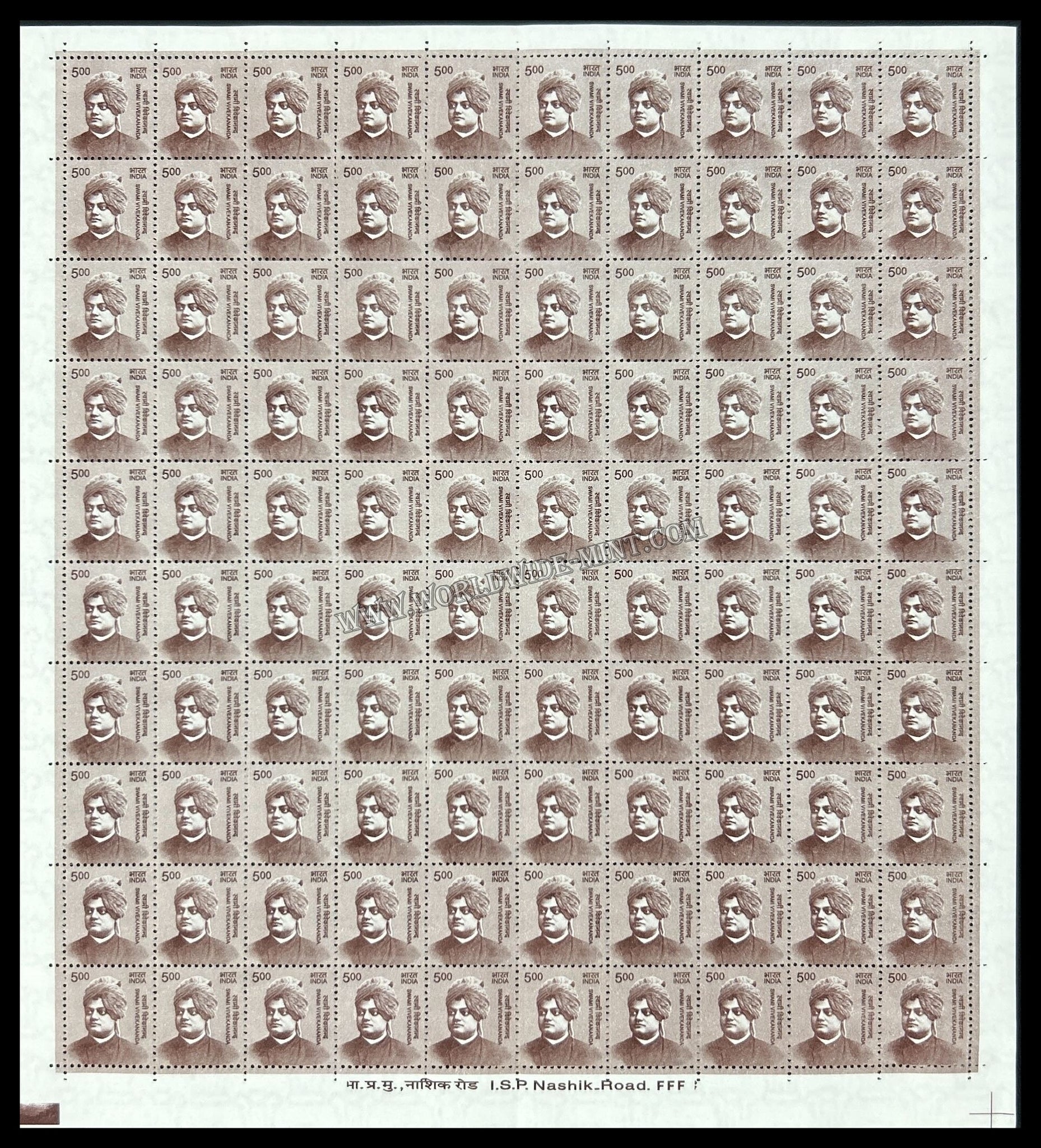 INDIA Swami Vivekananda 11th Series(5 00 ) Definitive Full Sheet of 100 Stamps MNH