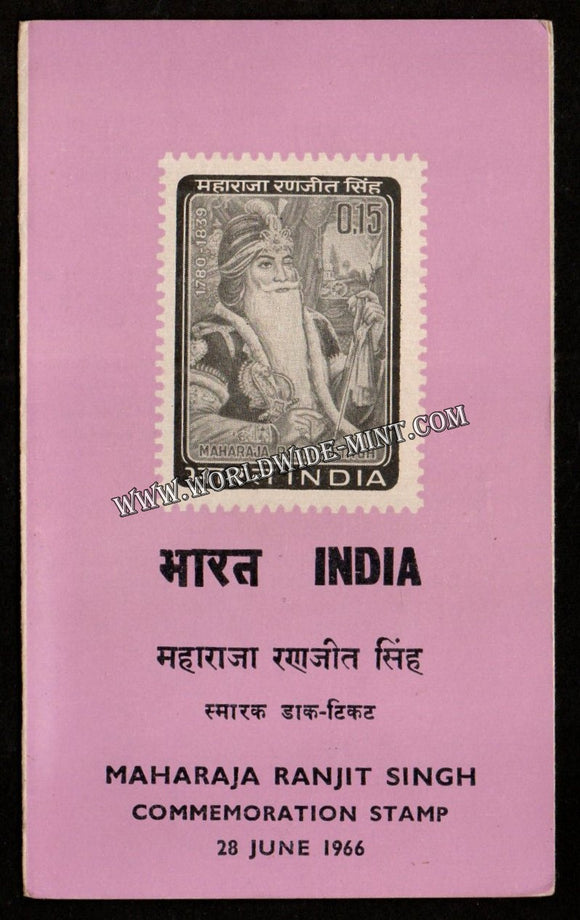 1966 INDIA Maharaja Ranjit Singh Plain Unstamped Brochure
