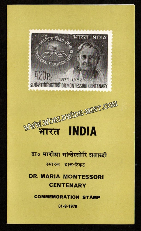 1970 INDIA Dr. Montessori Centenary Plain Unstamped Brochure