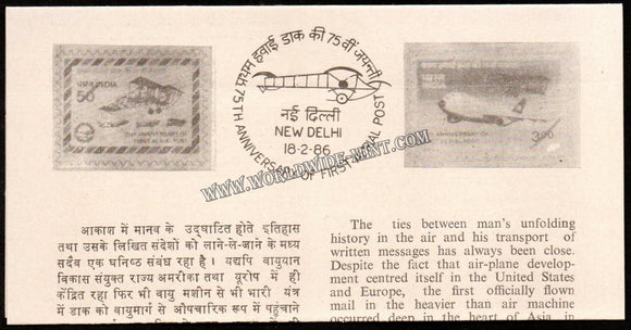 1986 75th Anniversary of First Aerial Post - 2v Set Plain Unstamped Brochure
