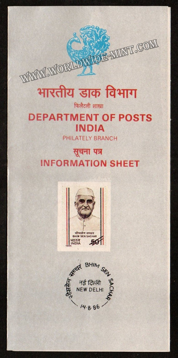 1986 Bhim Sen Sachar Plain Unstamped Brochure