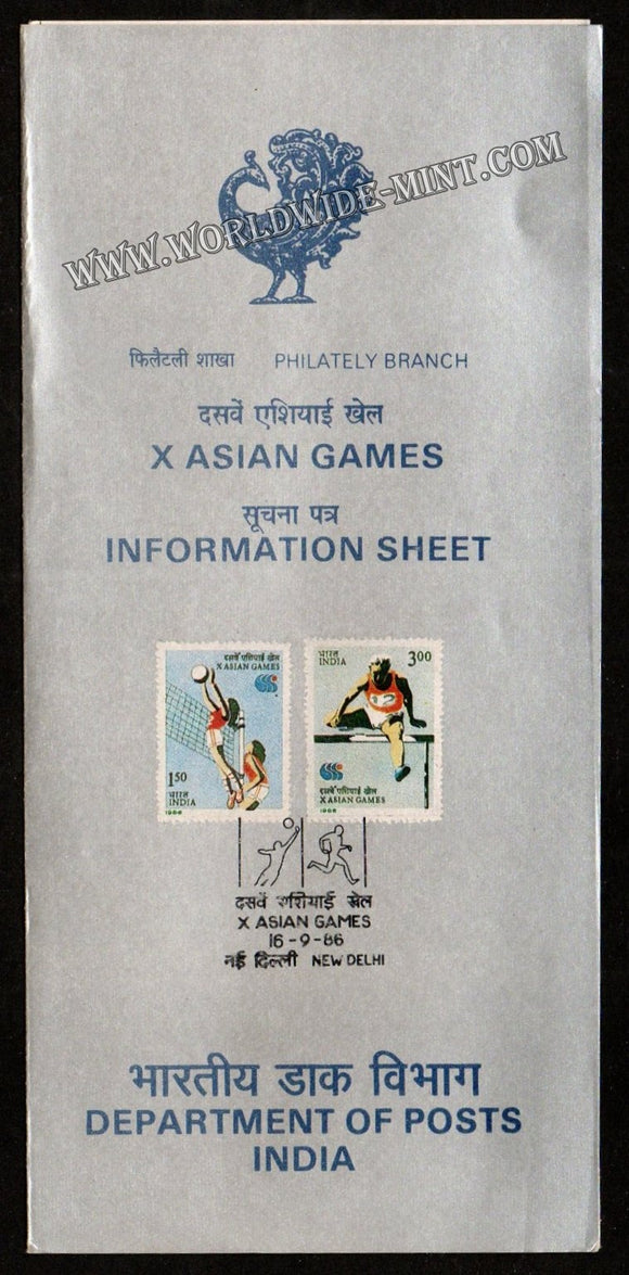 1986 X Asian Games - 2v Set Plain Unstamped Brochure