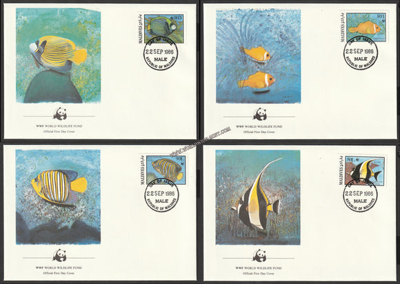 1986 Maldives WWF World wide Fund For Nature Angel Fish Set of 4 FDC #FE256