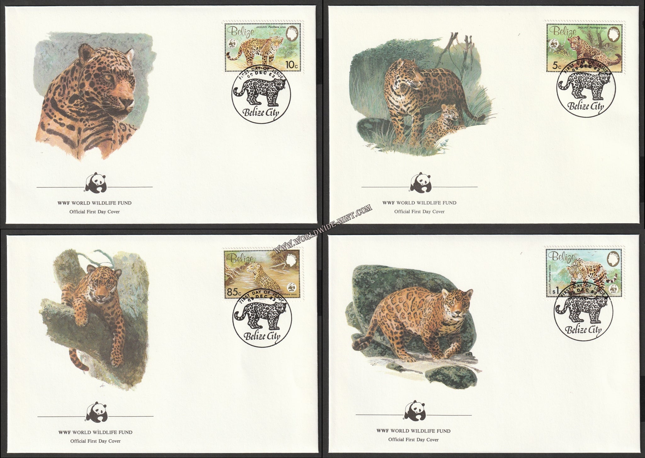 1983 Belize WWF World wide Fund For Nature Jaguar Set of 4 FDC #FE250