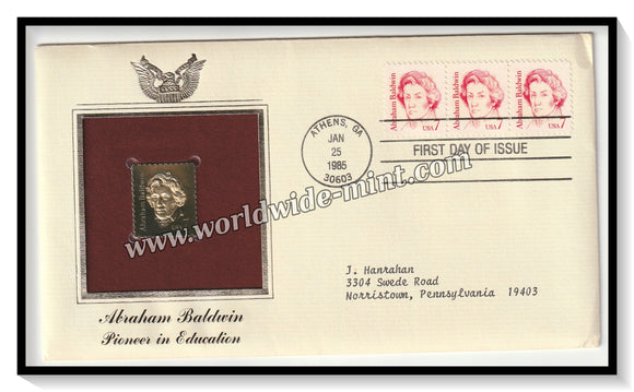 1985 USA Abraham Baldwin pioneer in Education - Gold Replica FDC #FE62
