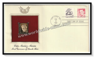 1990 USA Luis Munoz Marin First Governor of Puerto Rico - Gold Replica FDC #FE145