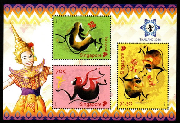 2016 Singapore Year of Monkey - Thailand Expo Logo Overprint Limited Print MS #S-48