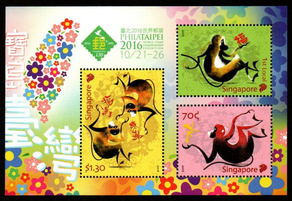 2016 Singapore Year of Monkey - Taipei Expo Logo Overprint Limited Issue MS #S-49