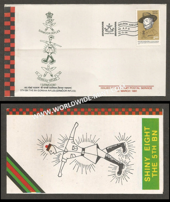 1991 India 5TH BATTALION THE 8TH GORKHA RIFLES GOLDEN JUBILEE APS Cover (15.03.1991)