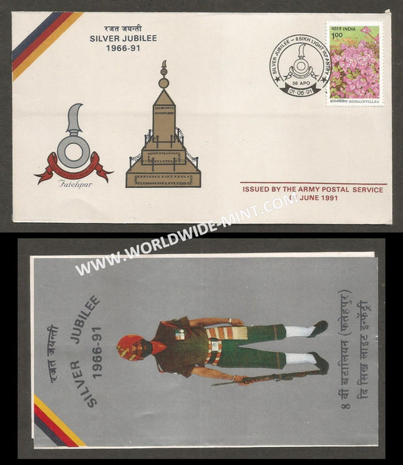 1991 India 8TH BATTALION THE SIKH LIGHT INFANTRY SILVER JUBILEE APS Cover (01.06.1991)
