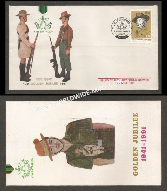 1991 India 4TH BATTALION THE 8TH GORKHA RIFLES GOLDEN JUBILEE APS Cover (15.03.1991)