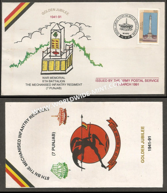 1991 India 8TH BATTALION THE MECHANISED INFANTRY REGIMENT ( 7 PUNJAB) GOLDEN JUBILEE APS Cover (16.03.1991)