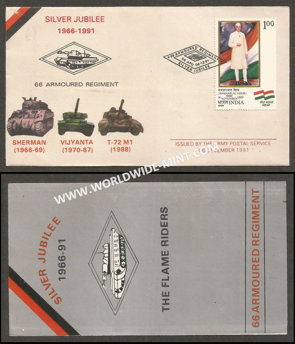 1991 India 66 ARMOURED REGIMENT SILVER JUBILEE APS Cover (06.12.1991)