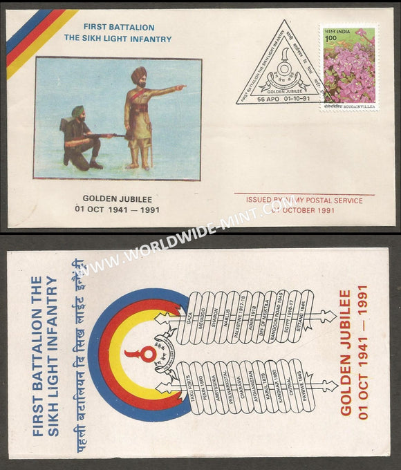 1991 India 1ST BATTALION THE SIKH LIGHT INFANTRY GOLDEN JUBILEE APS Cover (01.10.1991)