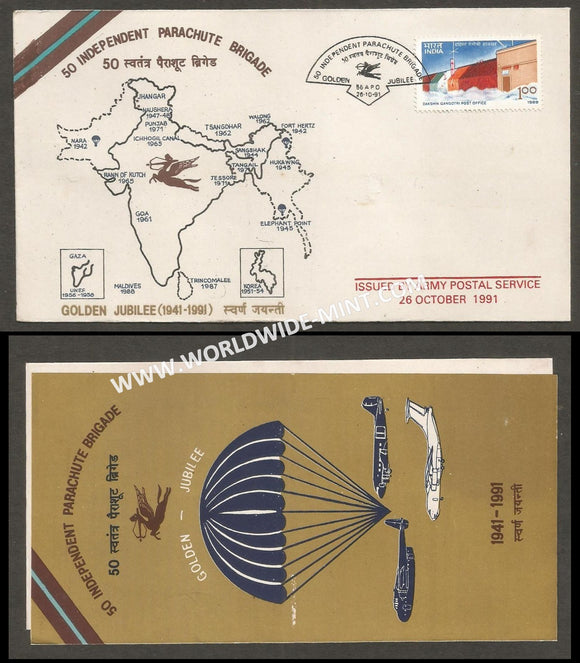 1991 India 50 INDEPENDENT PARACHUTE BRIGADE GOLDEN JUBILEE APS Cover (26.10.1991)