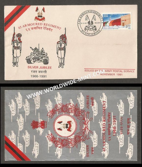 1991 India 65 ARMOURED REGIMENT SILVER JUBILEE APS Cover (11.11.1991)