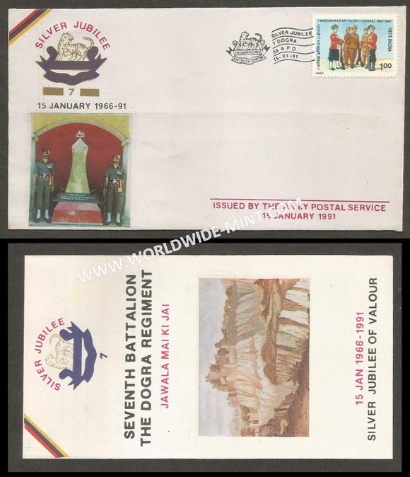 1991 India 7TH BATTALION THE DOGRA REGIMENT SILVER JUBILEE APS Cover (15.01.1991)