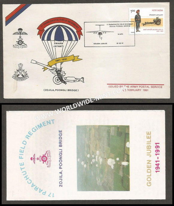 1991 India 17TH BATTALION PARACHUTE FIELD REGIMENT GOLDEN JUBILEE APS Cover (02.02.1991)