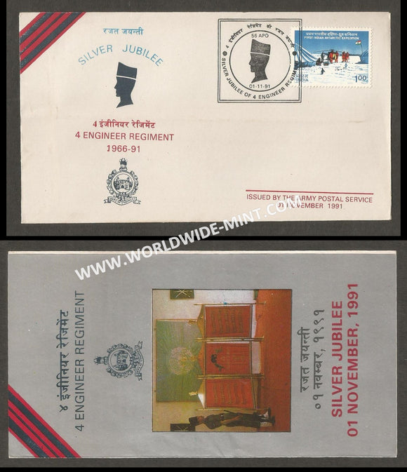 1991 India 4 ENGINEER REGIMENT SILVER JUBILEE APS Cover (01.11.1991)