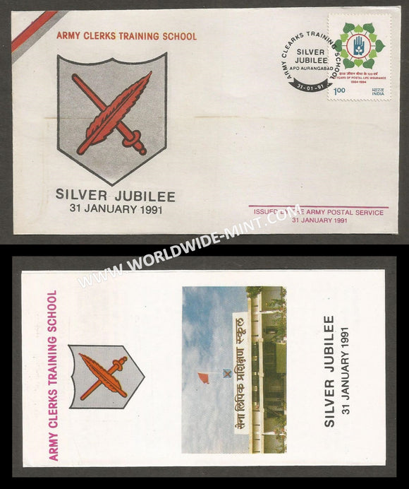 1991 India ARMY CLERKS TRAINING SCHOOL SILVER JUBILEE APS Cover (31.01.1991)