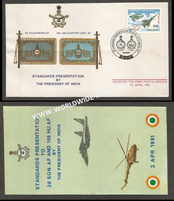 1991 India NO 28 SQUADON & 109 HELICOPTER UNIT AIR FORCE STANDARD PRESENTATION APS Cover (02.04.1991)
