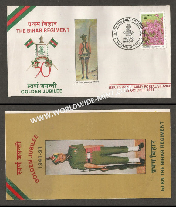 1991 India 1ST BATTALION THE BIHAR REGIMENT GOLDEN JUBILEE APS Cover (19.10.1991)