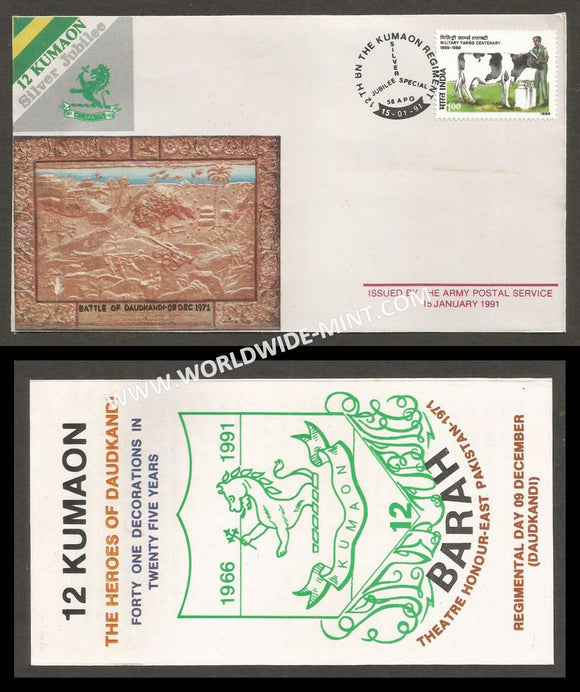 1991 India 12TH BATTALION THE KUMAON REGIMENT SILVER JUBILEE APS Cover (15.01.1991)