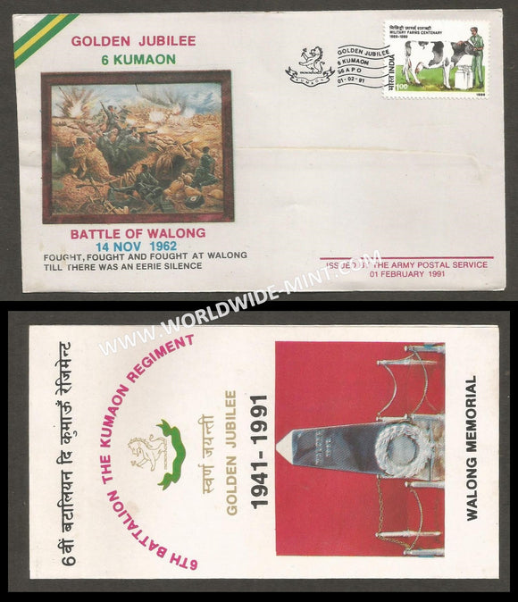 1991 India 6TH BATTALION THE JAT REGIMENT GOLDEN JUBILEE APS Cover (01.02.1991)
