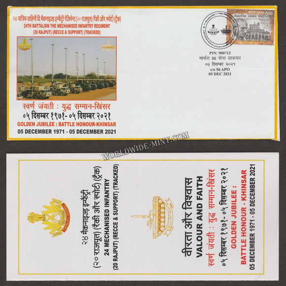 2021 INDIA 24TH BATTALION THE MECHANISED INFANTRY REGIMENT (20 RAJPUT) GOLDEN JUBILEE OF BATTLE HONOUR APS COVER (05.12.2021)