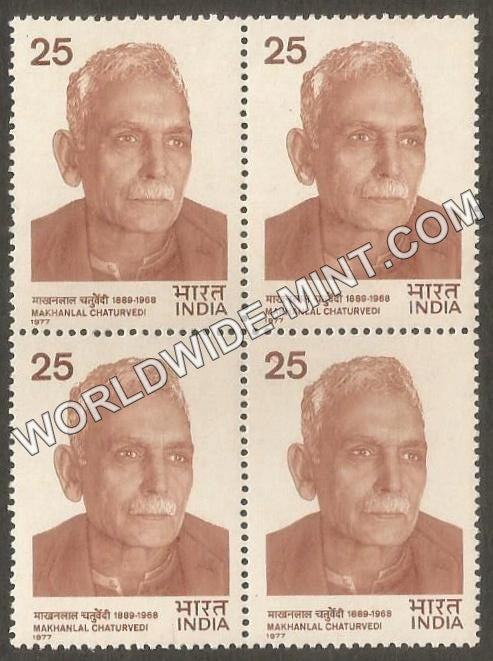 1977 Makhanlal Chaturvedi Block of 4 MNH
