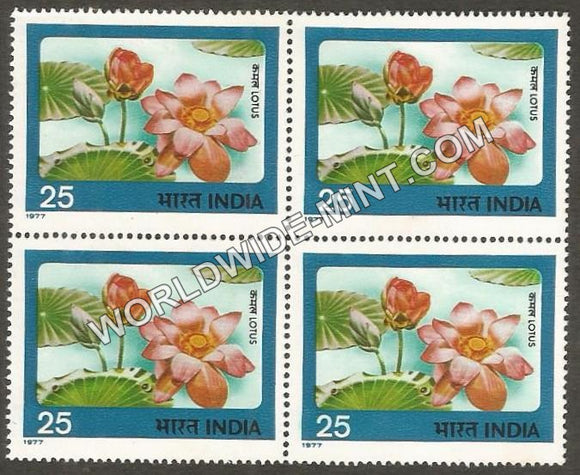 1977 Indian Flowers-Lotus Block of 4 MNH
