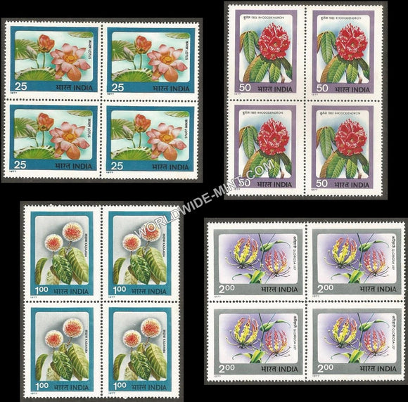 1977 Indian Flowers-Set of 4 Block of 4 MNH