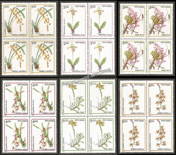 1991 Orchids-Set of 6 Block of 4 MNH
